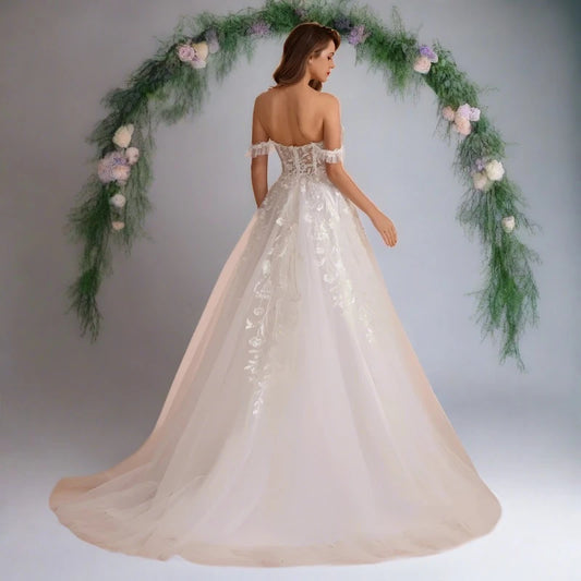 Ivory Organza Off Shoulder A-Line Bridal Gown