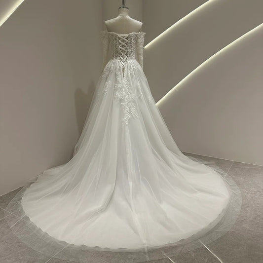 A-Line Sweetheart Lace Off Shoulders Bridal Gown