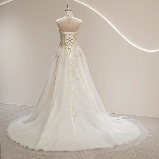 Halter Neckline Ivory Vintage Bride Wedding Gown