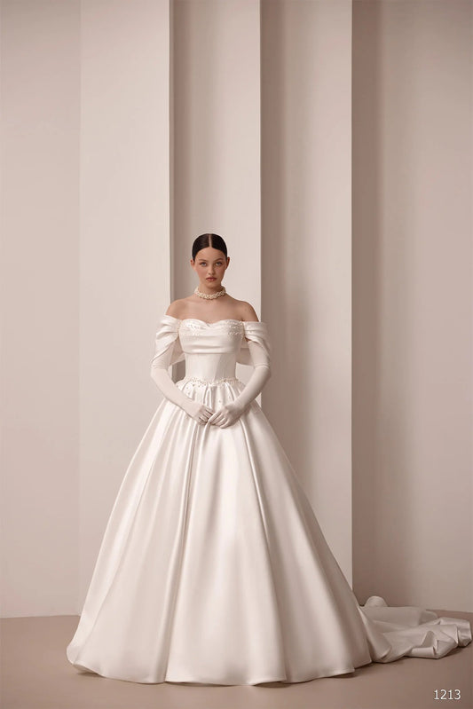 Ivory Off The Shoulder Satin Bridal Gown