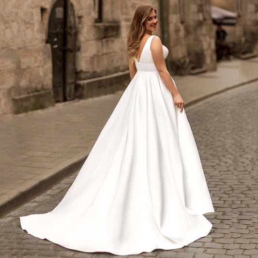 Plus Size Satin Sleeveless Wedding Dress