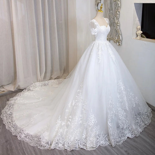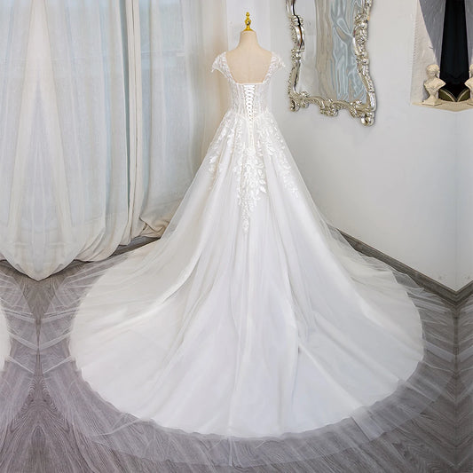 Romantic Lace Tulle Cap Sleeve Wedding Dress