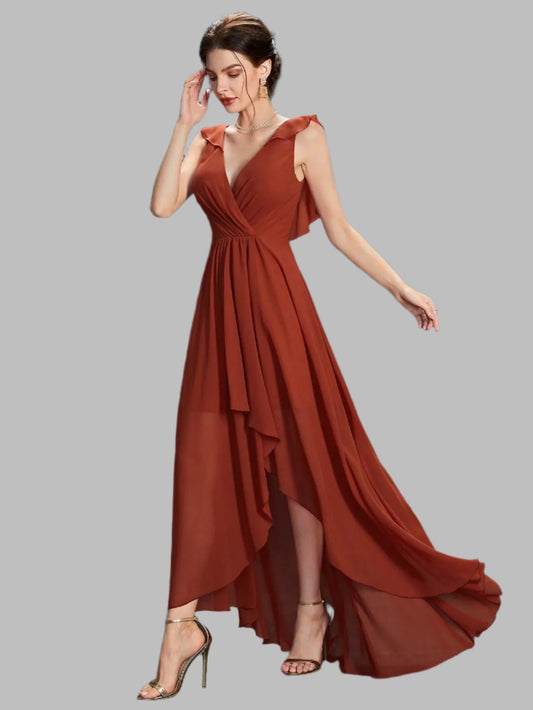 High Low Style Chiffon Front Ruffle Trim Party Dress