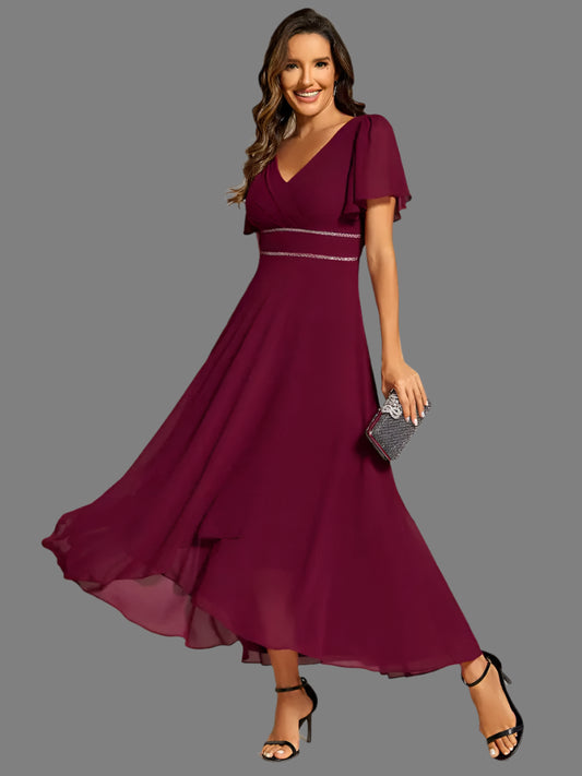 V-Neck A-Line Chiffon Burgundy Bridesmaids Dresses