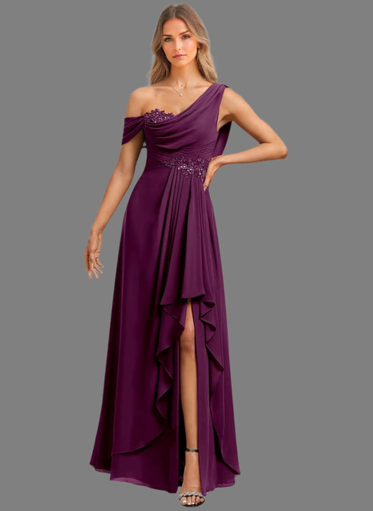 Plus Size Ruched Chiffon A-Line Formal Gown