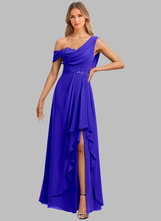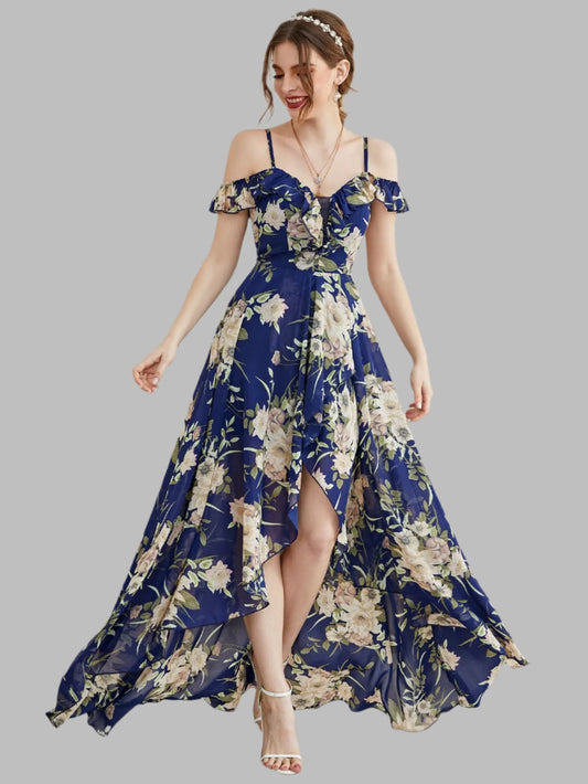 Off The Shoulder High Low Elegant Floral Chiffon Dress