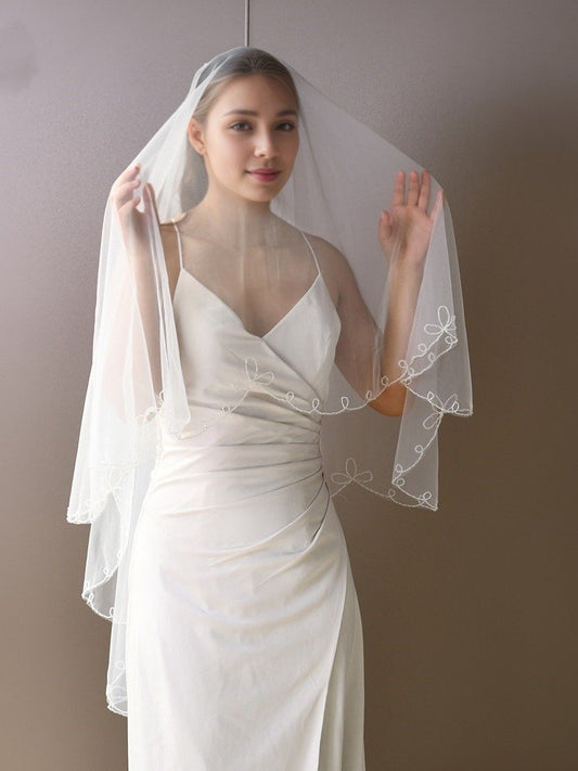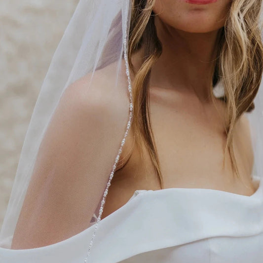 Bridal Crystal Beaded Edge Soft Wedding Veil