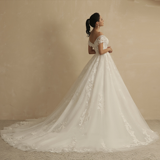 Romantic Lace Off Shoulder Boho Bridal Gown WD4005