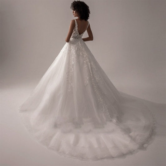 Ball Gown Tulle Lace Boho Wedding Gown WD4003