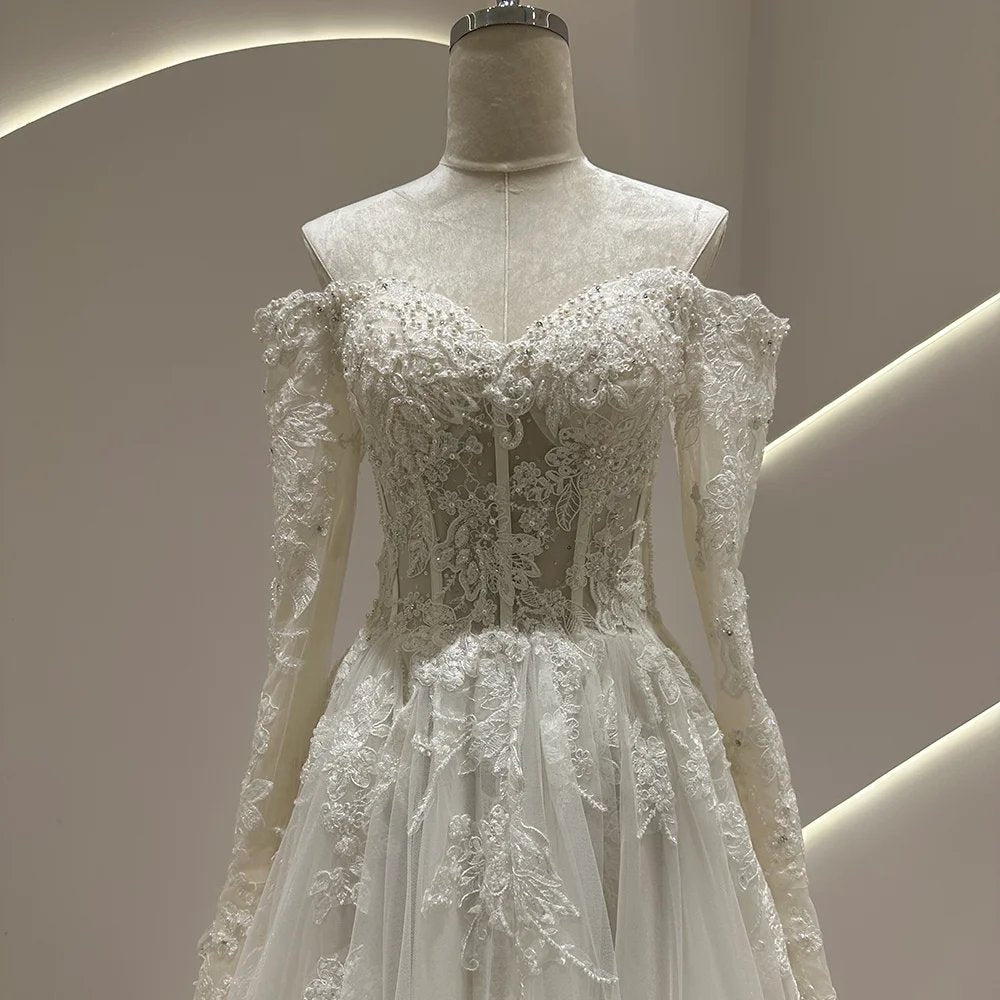 Step into your dream beach wedding with this playful Bohemian backless gown. Featuring a delicate lace-up back, built-in bra and corset for perfect support, and adorned with appliques, beads, crystals, flowers, pearls, and sequins, it sparkles with every step. The ivory A-line silhouette with a sweetheart neckline and illusion bodice flows gracefully to a court train, blending modern style with romantic charm. Made from soft bridal tulle and lace, this floor-length dress flatters every figure with standard, plus, or custom sizing. Celebrate your special day in effortless elegance and fun! Size Chart
