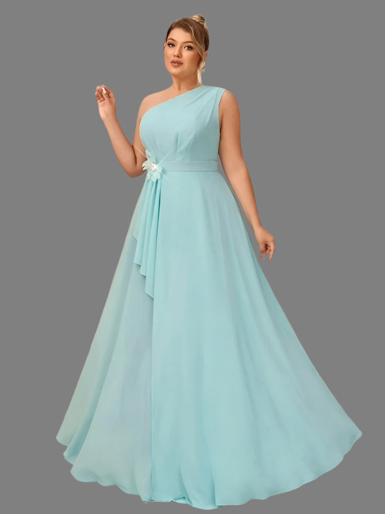 Plus Size One Shoulder Mint Chiffon Evening Dress
